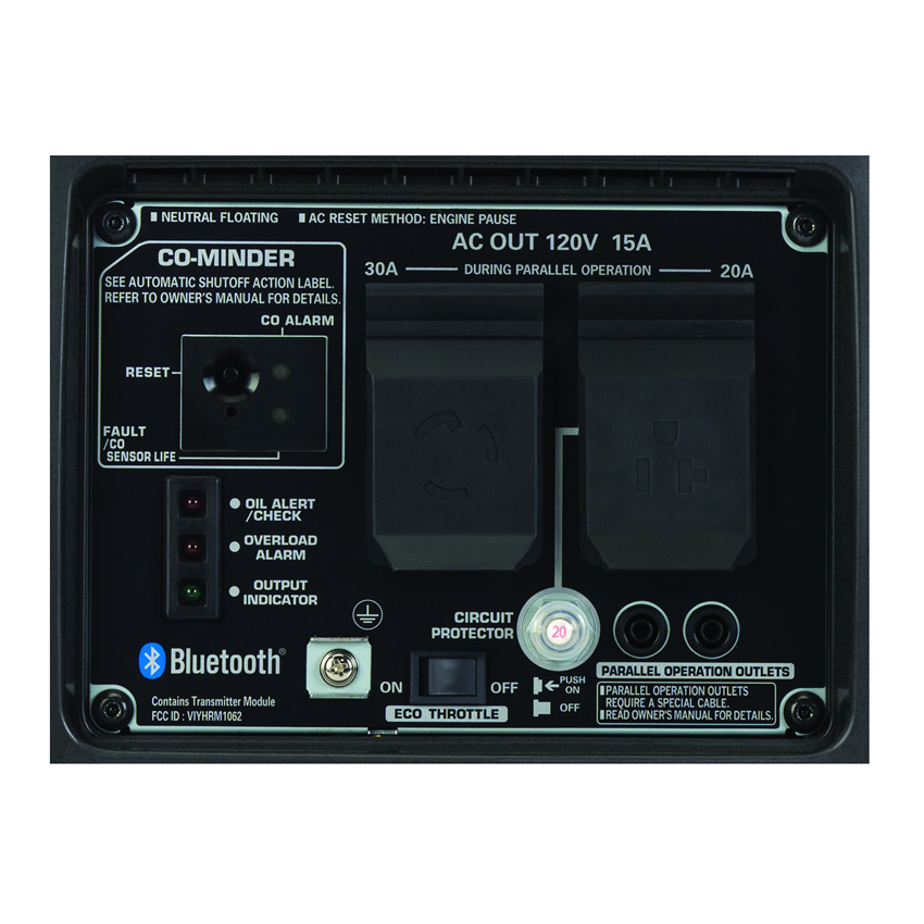 Honda My Generator app + Bluetooth® capacidadLa exclusiva aplicación para smartphone My Generator de Honda ofrece un funcionamiento y supervisión remotos del generador con un rendimiento impresionante y una comodidad inigualable. La aplicación incluye parada inalámbrica, monitorización del funcionamiento y recordatorios de mantenimiento mediante Bluetooth.® conectividad.*